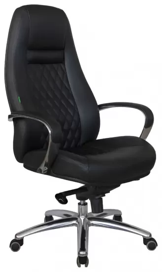 Кресло руководителя VERTU займет достойное место в роскошном рабочем кабинете или в современном домашнем интерьере. Отличительная особенность модели — металлическая вставка на тыльной стороне сиденья и спинки. Она обеспечивает дополнительную прочность конструкции, но в основном играет роль оригинального элемента декора. Сама спинка и сиденье имеют эргономичную форму, благодаря которой достигается высокий уровень комфорта для пользователя. Каркас изготовлен из металла, а его видимые элементы имеют хромированное покрытие. В качестве материала обивки используется черная экокожа, которая отличается высокими эксплуатационными показателями.