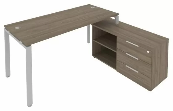 Рабочая станция с опорной тумбой левая- Вяз благородный/Серый металл