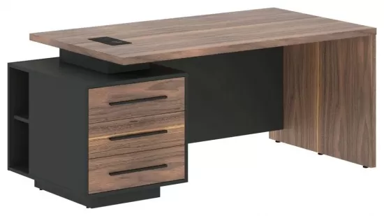 Стол руководителя левый- Американский орех/Яшма черный